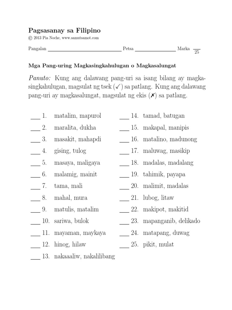 Mga Salitang Magkasingkahulugan Pdf