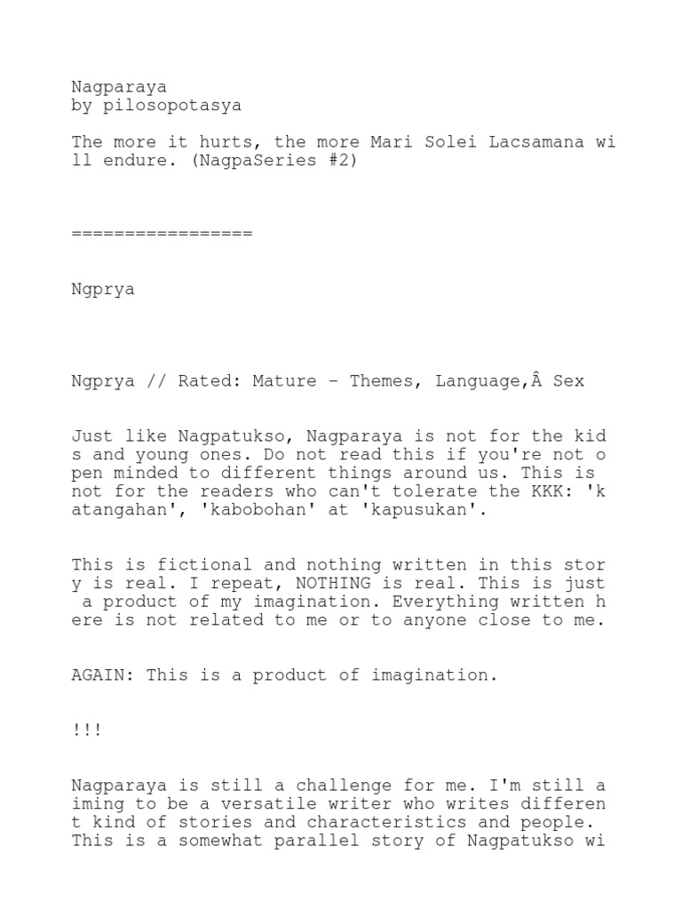 2 Ang nasa isip nilay laging kaguluhan at ang dila nilay puno ng kasinungalingan. -Walang matiyagang lalaki sa pihikang babae. Napakasimple ng buhay namin doon walang kuryente o sasakyan.